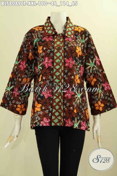 Model Pakaian Batik Motif Bunga, Batik Blus Keren Dengan Krah Lancip Proses Cap Tulis, Pas Banget Untuk Seragam Kerja Kantoran [BLS8089CT-XXL]