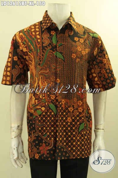 Model Terbaru Busana Batik Kerja Pria Masa Kini, Kemeja Batik Solo Lengan Pendek Halus Kwalitas Bagus Hadir Dengan Harga Terjangkau Motif Elegan Proses Kombinasi Tulis [LD12615BT-XL]