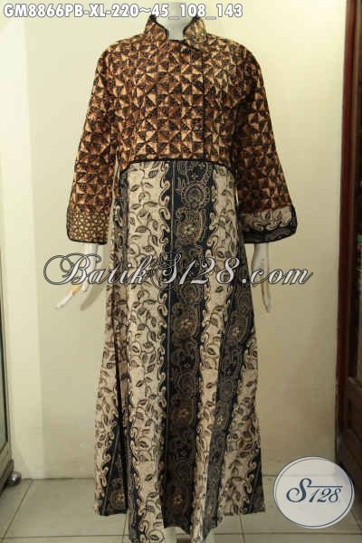 Model Terbaru Gamis Batik Untuk Wanita Tampil Anggun Mempesona, Baju Batik Syar’i Kekinian Khas Jawa Tengah Dengan Bahan Halus Dan Adem Nyaman Untuk Aktifitas Harian [GM8866PB-XL]