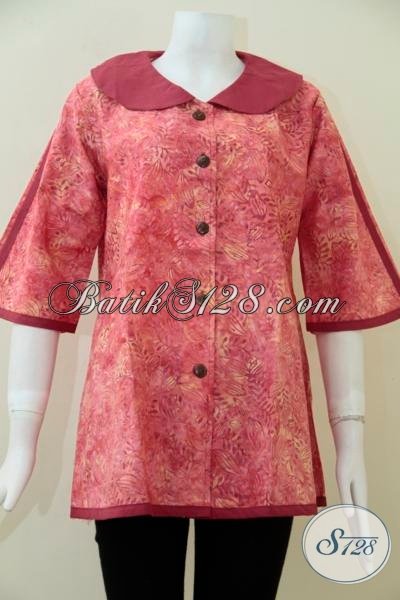Model Terkini Blus Batik Formal Untuk Kerja Wanita Kantoran, Baju Batik Modern Warna Soft Trendy Dan Fashionable [BLS1508CS-L,XL]