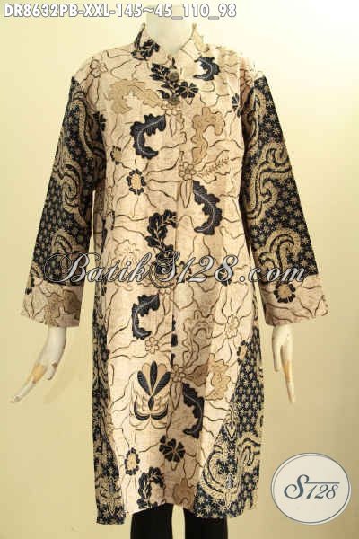 Model Tunik Batik Dress Wanita Berbadan Gemuk, Busana Batik ELegan Lengan 7/8 Dengan Krah Shanghai Dan Pakai Kancing Depan, Tampil Modis Dan Berkelas [DR8632PB-XXL]