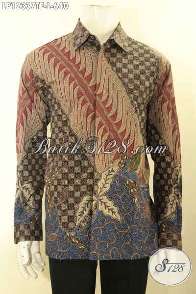 Motif Baju Batik Pria Terbaru Jenis Tulis Lasem Nan Mewah, Kemeja Batik Premium Lengan Panjang Full Furing Yang Menunjang Penampilan Gagah Berwibawa [LP12337TF-L]
