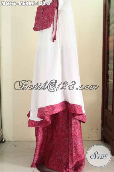 Mukena Batik Warna Merah Nan Mewah, Rukuh Batik Atasan Bahan Santung Dengan Bawahan Katun Berpadu Motif Trendy, Di Jual Online Hanya 130 Ribu [MC076-Dewasa]