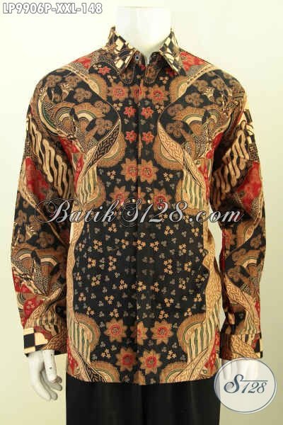 Olshop Baju Batik Online Paling Up To Date, Sedia Hem Lengan Panjang 3L, Busana Batik Jumbo Nan Istimewa Spesial Untuk Lelaki Gemuk [LP9906P-XXL]