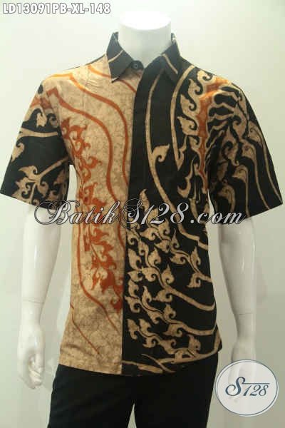 Olshop Busana Batik Paling Lengkap Koleksinya, Jual Hem Batik Modis Kwalitas Bagus Berpadu Motif Trendy Khas Solo Jenis Print Cabut Model Lengan Pendek, Pas Buat Kerja Dan Hangout [LD13091PB-XL]