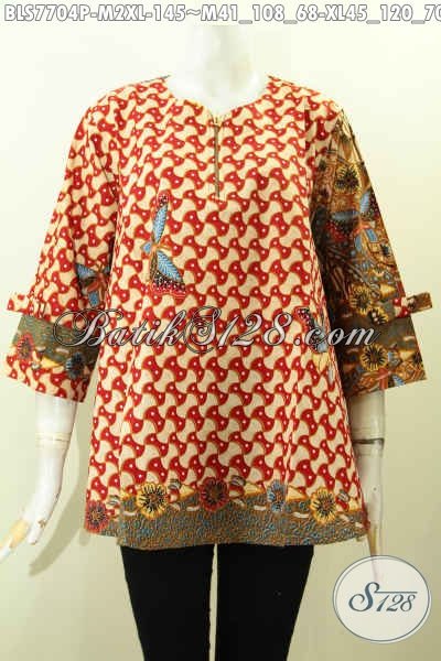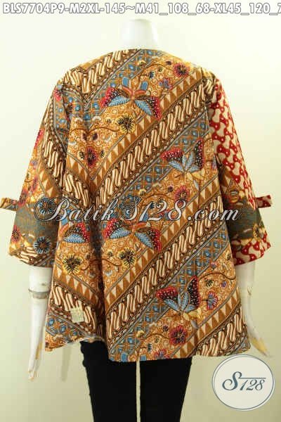 Olshop Pakaian Batik Wanita, Sedia Blus Kombinasi Model Pita Resleting Depan Motif Berkelas Proses Printing Harga 145K [BLS7704P-M , XL]