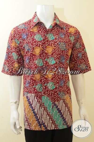 Online Shop Batik Solo Paling Lengkap, Sedia Pakaian Batik Masa Kini Motif Ikean Warna Dasar Merah, Baju Batik Jumbo Exclusive Pria Gemuk [LD3946CT-XXL]