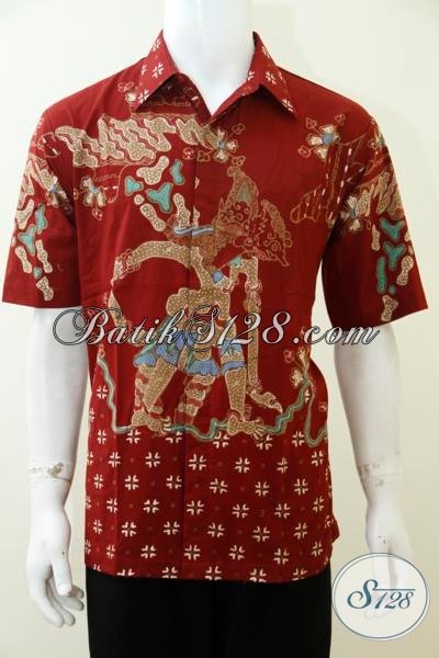 Online Shop Batik Solo, Sedia Kemeja Batik Wayang Antasena Putra Bima Dengan Warna Dasar Merah, Baju Batik Tulis Lengan Pendek Tampil Modis Dan Mewah Di Tempat Kerja [LD2971T-L]