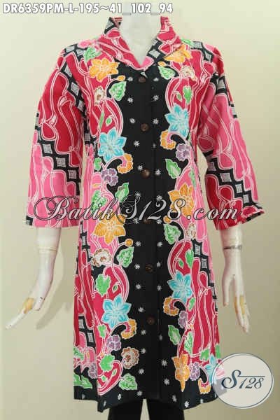 Online Shop Busana Batik Sedia Dress Kerah Langsung Bahan Halus Motif Bagus Kombinasi Tulis, Pas Banget Untuk Acara Resmi [DR6359PM-L]