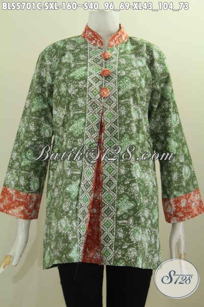 Online Shop Busana Kerja Langganan Karyawan, Sedia Blus Pias Depan Kancing Besar Dengan Motif Dan Warna Mewah Harga 160K [BLS5701C-S , XL]