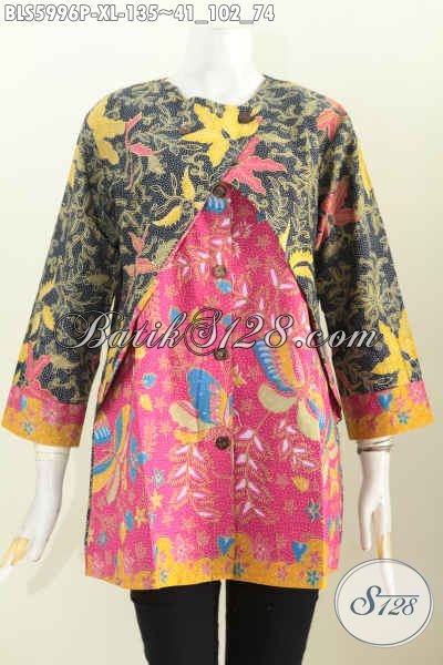 Online Shop Pakaian Batik Terlengkap, Jual Baju Blus Batik Lengan Panjang Kombinasi Rompi Bahan Halus Motif Bagus Proses Printing, Cocok Buat Hangout [BLS5996P-XL]