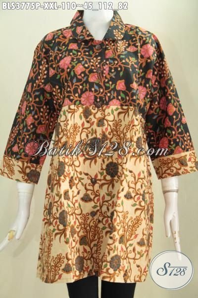 Online Shop Produk Batik Jawa, Jual Blus Batik Wanita Gemuk Ukuran Jumbo, Pakaian Batik Dua Warna Motif Terbaru Model Kerah Bulat Tampil Stylish [BLS3775P-XXL]