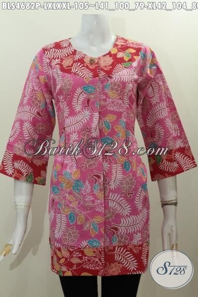 Online Shop Produk Batik Jawa Tengah, Sedia Blus Batik Tendy Kombinasi Dua Warna Pink Dan Merah, Berbahan Halus Motif Unik Proses Printing 100 Ribuan Saja [BLS4682P-L , XXL]