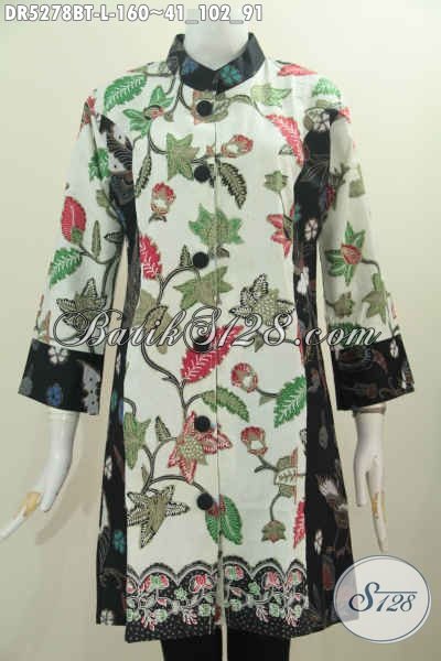 Paian Batik Dress Keren Halus Motif Kombinasi Berbahan Adem Proses Kombinasi Tulis Model Kerah Paspol Shanghai Asli Buatan Solo [DR5278BT-L]