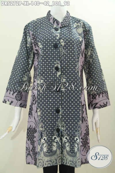 Pakaian Batik Berkelas, Busana Batik Dress Terusan Kerah Paspol Shanghai Berbahan Adem Motif Printing Terkini Harga 140K [DR5272P-XL]