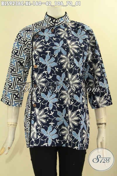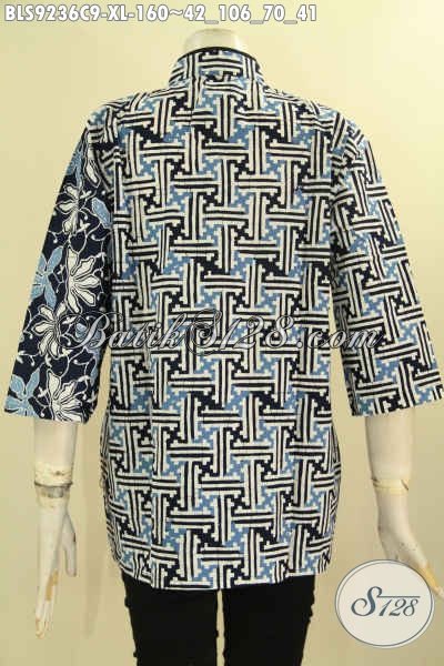 Pakaian Batik Blouse Terbaru Untuk Wanita Kerja, Bahan Halus Motif Terkini Model Kerah Shanghai Kombinasi Plesir Polos, Tampil Cantik Dan Mewah Hanya 160K [BLS9236C-XL]