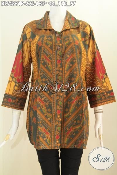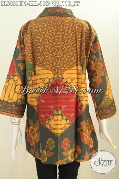 Pakaian Batik Blus 3L, Produk Busana Batik ELegan Berkelas Model Kerah Kotak Motif Sinaran, Baju Batik Printing Istimewa Harga Murah Kwalitas Mewah [BLS4831P-XXL]