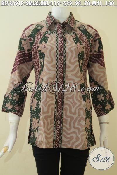 Pakaian Batik Blus Model Terbaru Kesukaan Wanita Karir, Baju Blus Berkelas Proses Printing Berbahan Batik Halus Dan Adem Harga Murmer [BLS3691P-XXL]