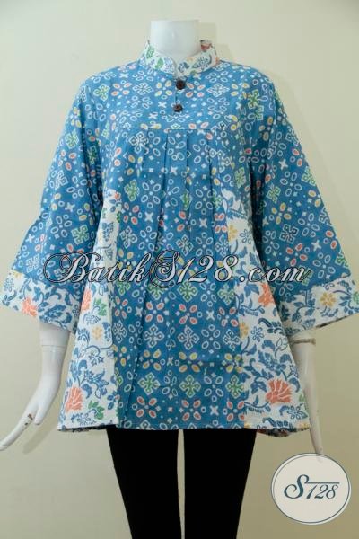 Pakaian Batik Cap Terbaru Untuk Perempuan, Blus Batik Biru Motif Terkini Untuk Tampil Lebih Bergaya [BLS1949C-XL]