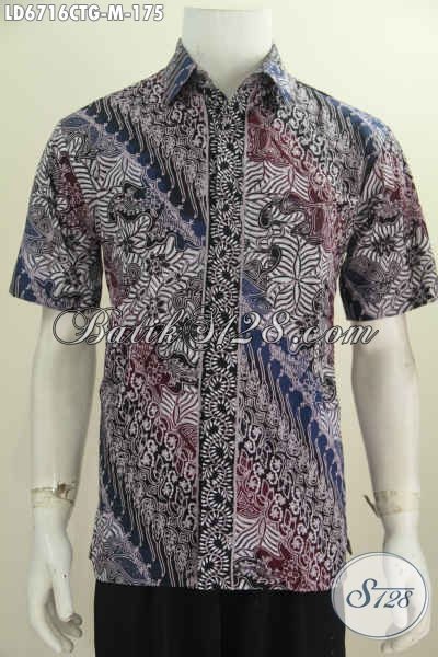 Pakaian Batik Cowok Size M, Hem Batik Lengan Pendek Keren Bahan Halus Harga 100 Ribuan, Baju Batik Cap Tulis Soga Asli Dari Solo Untuk Pria Kantoran [LD6716CTG-M]
