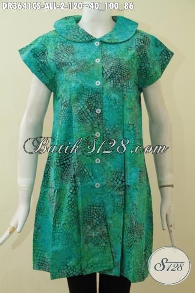 Pakaian Batik Dress Modis Istimewa Produk Terbaru Tahun Ini, Baju Batik Istimewa Warna Hijau Proses Cap Smoke, Berbahan Halus Adem Nyaman Di Pakai [DR3641CS-All Size]