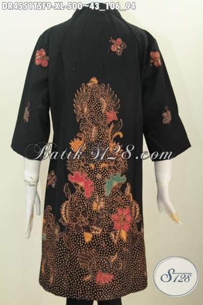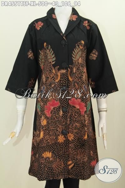 Pakaian Batik Dress Wanita Dewasa Ukuran XL, Busana Batik Premium Motif Terkini Tulis Soga Kwalitas Istimewa Dengan Daleman Pake Furing Tricot [DR4551TSF-XL]