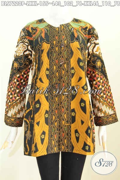 Pakaian Batik Elegan Klasik, Blus Tanpa Krah Pakai Ofneisel Desain Mewah Bahan Halus Proses Printing Harga 155K [BLS7220P-L , XXL]