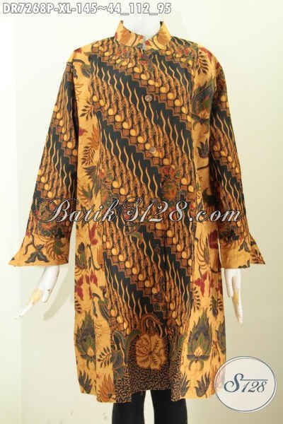 Pakaian Batik Elegan Klasik Kombinasi 2 Warna, Baju Batik Wanita Modis Kerah Shanghai Cocok Untuk Seragam Kerja Kantoran Proses Printing [DR7268P-XL]