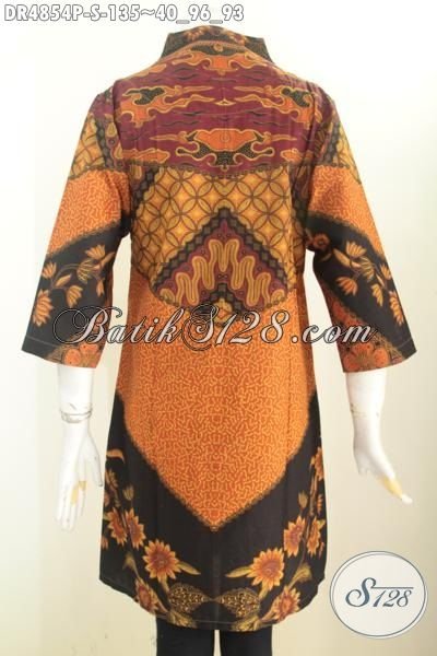 Pakaian Batik Elegan Motif Klasik, Baju Dress Printing Motif Sinaran Model Kerah Langsung Bahan Adem Asli Dari Jawa Tengah [DR4854P-S]