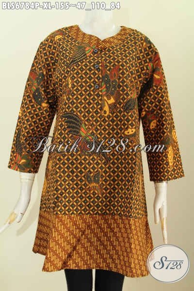 Pakaian Batik Elegan Motif Klasik Model Lengan Pakai Pita Desain Cutting A, Baju Batik Kombinasi Perempuan Dewasa Tampil Mempesona [BLS6784P-XL]