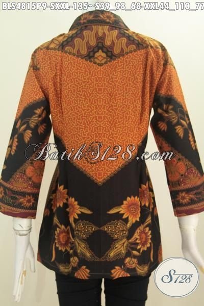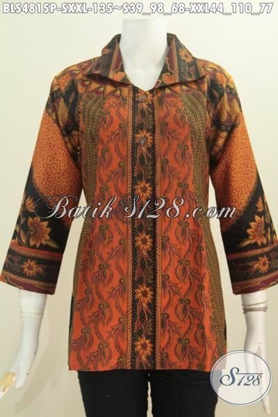 Pakaian Batik Elegan Wanita Masa Kini, Blus Batik Kerah Kotak Untuk Kerja Berbahan Halus Proses Printing Motif Sinaran Dengan Lengan Tujuh Perdelapan [BLS4815P-S , XXL]