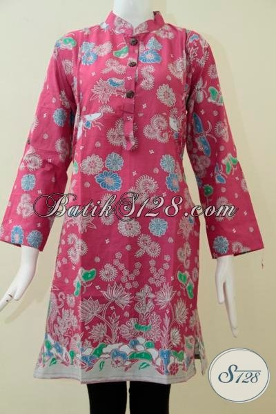 Pakaian Batik Formal Warna Merah Jambu Motif Modern Sentuhan Klasik, Batik Proses Print Kwalitas Bagus Harga Murah Meriah [BLS1698P-L]