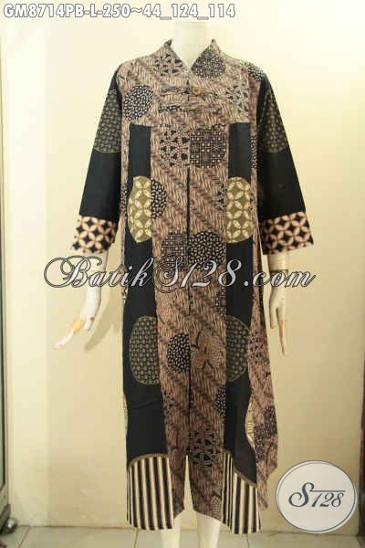 Pakaian Batik Gamis Wanita Modern Dengan Motif Unik Pakai Kancing Depan, Busana Batik Wanita Muslimah Untuk Penampilan Cantik Elegan [GM8714PB-L]