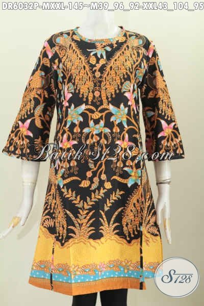 Pakaian Batik Halus Keren Elegan, Baju Batik Modern Proses Printing Motif Mewah Model Klok Pakai Resleting Belakang Untuk tampil Makin Modis [DR6032P-M , XXL]