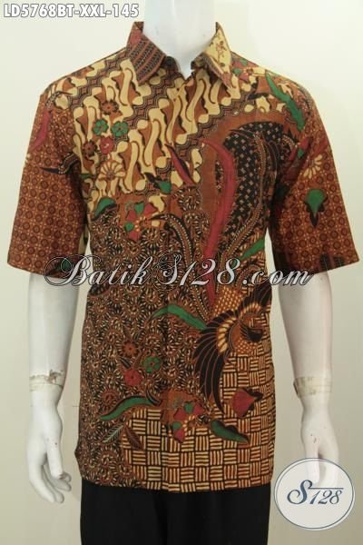 Pakaian Batik Halus Motif Elegan Dan Mewah Spesial Buat Lelaki Gemuk, Baju Batik Kombinasi Tulis Model Lengan Pendek Modis Untuk Acara Formal Dan Seragam Kerja [LD5768BT-XXL]