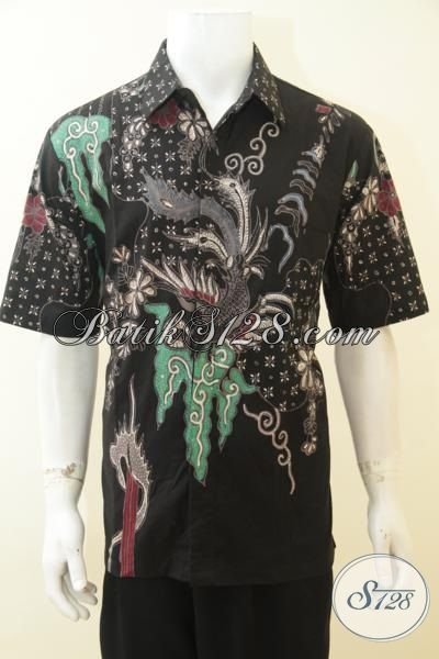 Pakaian Batik Halus Warna Dasar Hitam, Baju Batik Tulis Motif Modern Khas Anak Muda, Batik Solo Lengan Pendek Untuk Tampil Gagah [LD4047T-XL]