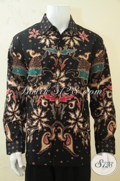 Pakaian Batik Hitam Motif Keren Berbahan Halus Proses Tulis Tangan Asli, Baju Batik Lengan Panjang Full Furing Pakaian Kerja Pejabat Dan Executive [LP4301TF-XL]