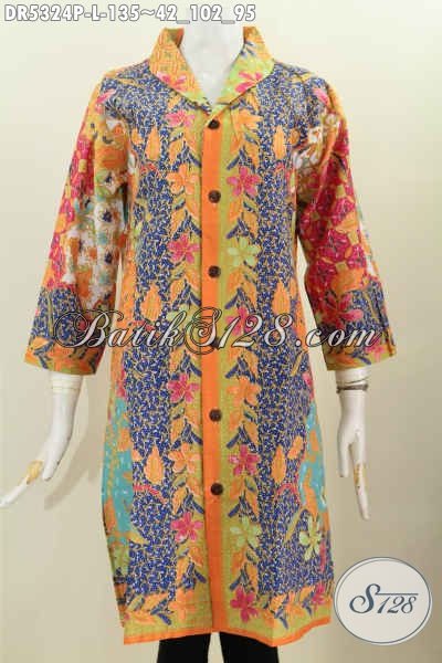 Pakaian Batik Istimewa Bahan Halus Motif Mewah Proses Printing, Baju Batik Istimewa Model Kerah Langsung Buatan Solo Harga Terjangkau [DR5324P-L]