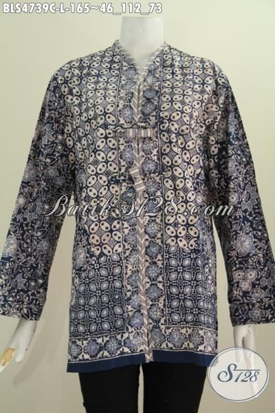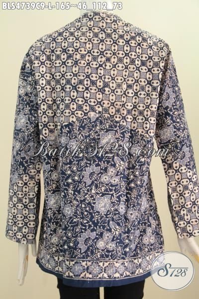Pakaian Batik Istimewa Buatan Solo, Baju Blus Salur Halus Desain Mewah Bahan Adem Motif Unik Proses Cap, Cocok Untuk Seragam Kerja Kantoran [BLS4739C-L]