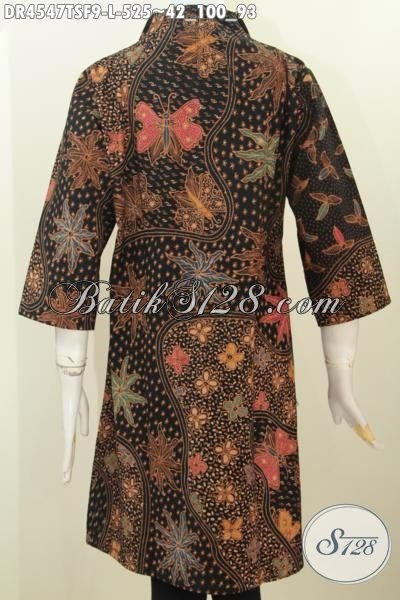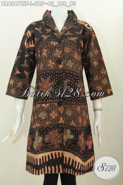 Pakaian Batik Istimewa Buatan Solo Untuk Wanita Karir Yang Ingin Tampil Sempurna, Dress Batik Premium Proses Tulis Soga Motif Mewah Daleman Full furing model Kerah Langsung [DR4547TSF-L]