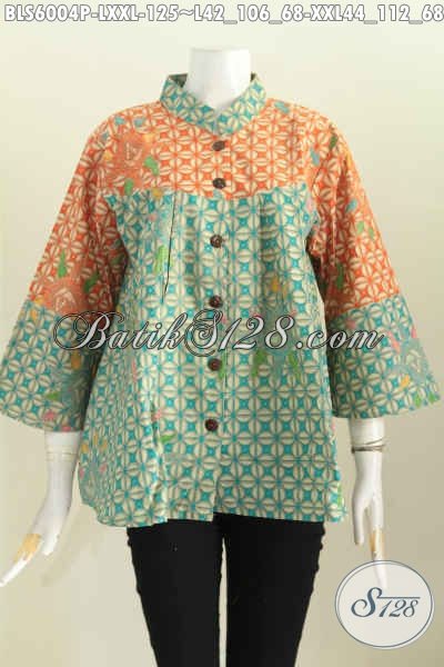 Pakaian Batik Istimewa, Busana Batik Elegan Halus Proses Model Kerah Shanghai Nagita Untuk Perempuan Tampil Gaya Dan Mempesona [BLS6004P-L , XXL]