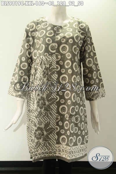 Pakaian Batik Istimewa Yang Membuat Wanita Tampil Cantik Dan Modis, Berbahan Halus Model Lengan 7/8 Tanpa Kerah Yang Di Lengkapi Resleting Jepang Di Belakang Berpadu Dengan Motif Terkini Khas Jawa Tengah [BLS9819C-XXL]