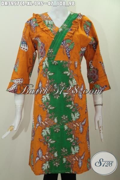 Pakaian Batik Jawa Terbaru Buat Wanita Dewasa, Baju Dress Modern Model Resleting Belakang Motif Unik Proses Cap Tulis Tampil Makin Manis [DR3957CT-XL]