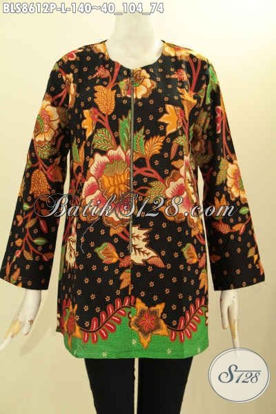 Pakaian Batik Kemeja Blouse Lengan Panjang Elegan Bikin Penampilan Lebih Berkelas, Baju Batik Solo Asli Resleting Depan Kantong Paspol Kanan Kiri Di Pinggang Hanya 140 Ribu Saja [BLS8612P-L]