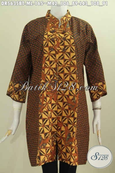 Pakaian Batik Kerah Shangahi, Dres Batik Model Kancing Zig-Zag, Busana Batik Klasik Bahan Halus Proses Kombiansi Tulis Harga 165K [DR5635BT-M , L]