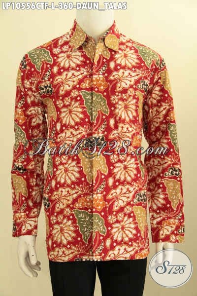 Pakaian Batik Keren Lengan Panjang Cap Tulis, Busana Batik Modis Motif Daun Talas Daleman Full Furing, Tampil Gagah Mempesona [LP10556CTF-L]