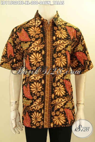 Pakaian Batik Kerja Cowok Lengan Pendek Motif Daun Talas Proses Cap Tulis Soga, Busana Batik Solo Asli Untuk Pria Dewasa, Bisa Untuk Acara Santai Dan Resmi [LD11532CTS-XL]