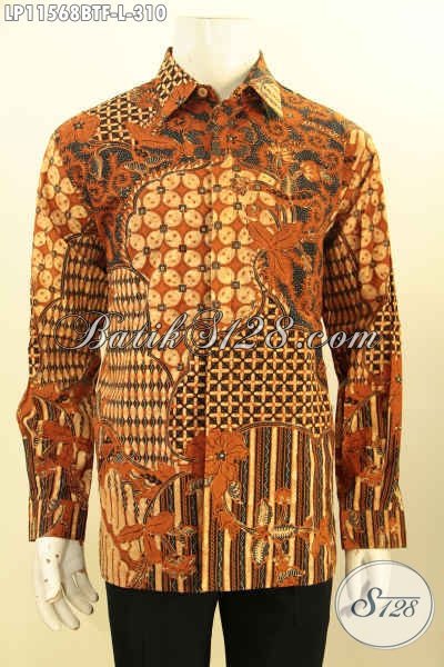 Pakaian Batik Kerja Pria Terbaru Model Lengan Panjang Motif Elegan Klasik, Busana Batik Kombinasi Tulis Istimewa Daleman Full Furing, Pilihan Tepat Tampil Gagah Berwibawa [LP11568BTF-L]