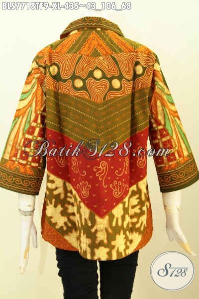 Pakaian Batik Kerja Wanita Dewasa, Blus Elegan Model Terkini Bahan Halus Motif Sinaran Proses Tulis Daleman Di Lengkapi Tricot Lebih Nyaman Dan Berkelas [BLS7718TF-XL]