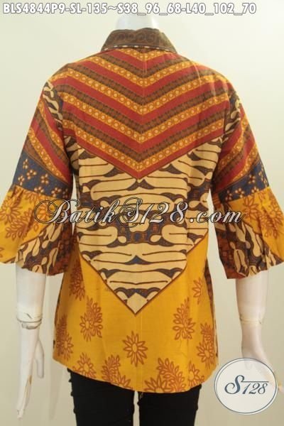Pakaian Batik Klasik Desain Mewah Kerah Kartini, Baju Blus Batik Formal Nan Istimewa Berbahan Adem Proses Printing Motif Sinaran Daleman Tidak Pakai Furing [BLS4844P-L]